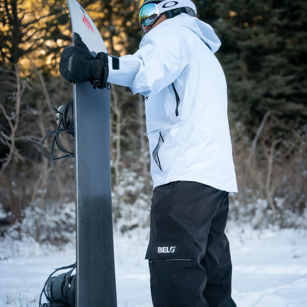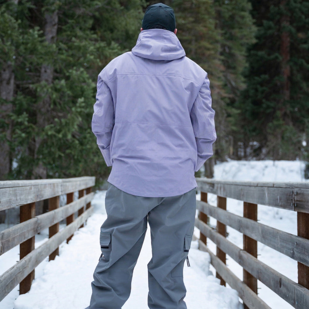 Engineered for riders who don’t stop when the weather turns, this 3-layer shell provides a strong barrier against snow and wind while remaining breathable during activity. The fabric is finished with a PFAS-free DWR treatment that encourages quick beading and shedding of moisture.